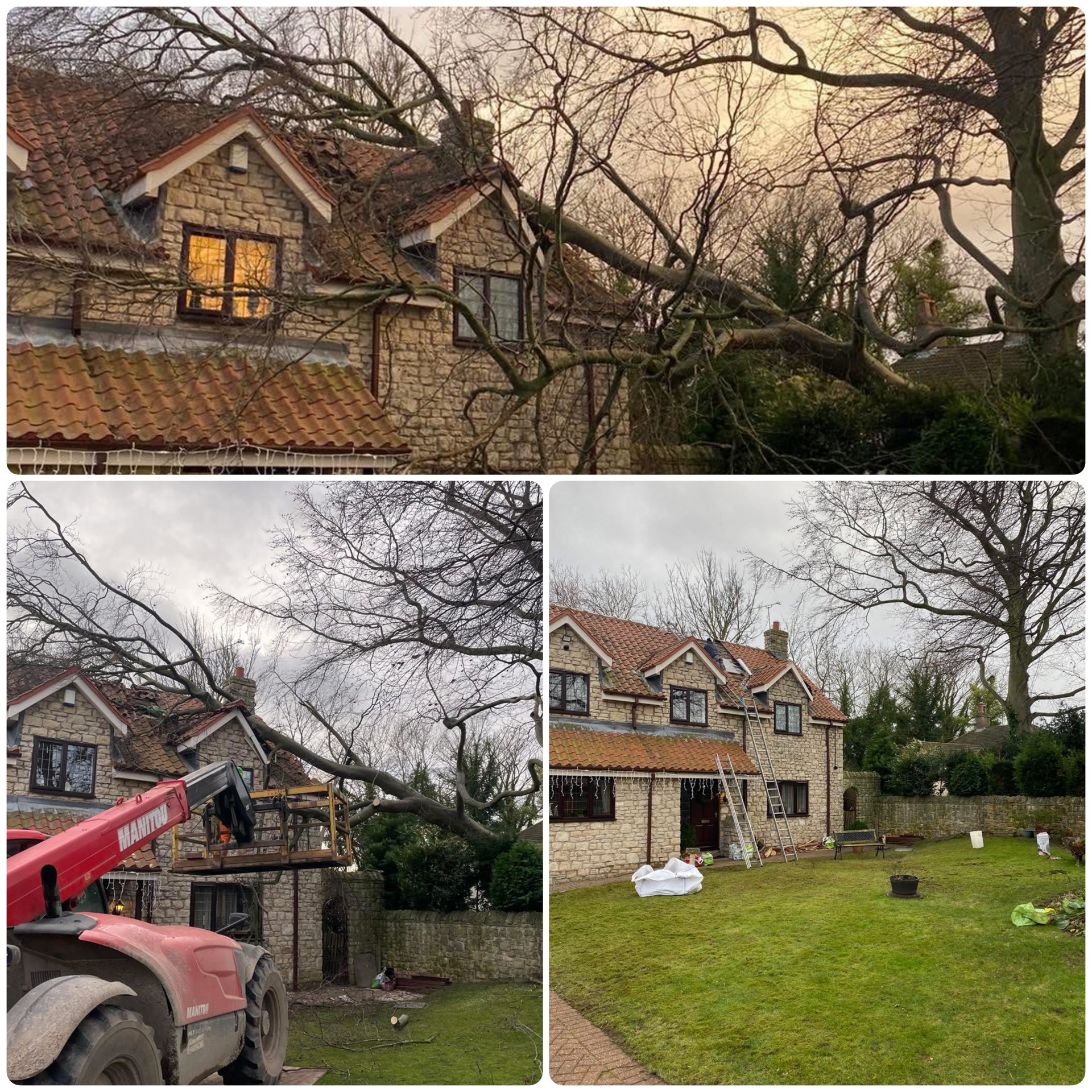 The tree was carefully dismantled and removed using controlled methods to ensure the safety of the property and surrounding area. Close coordination was maintained with a roofing contractor to allow temporary repairs to be completed promptly.
