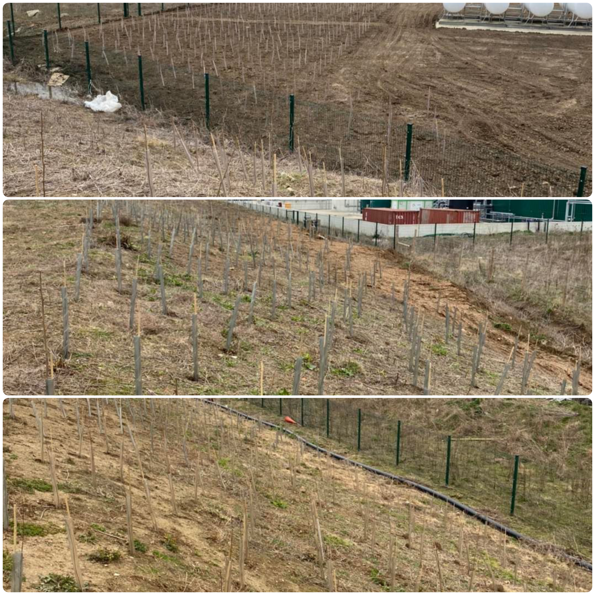 The project involved extensive planting on the bunds surrounding an anaerobic digestion (AD) plant. A wide variety of tree species were planted to improve visual screening, biodiversity, and long-term site integration.